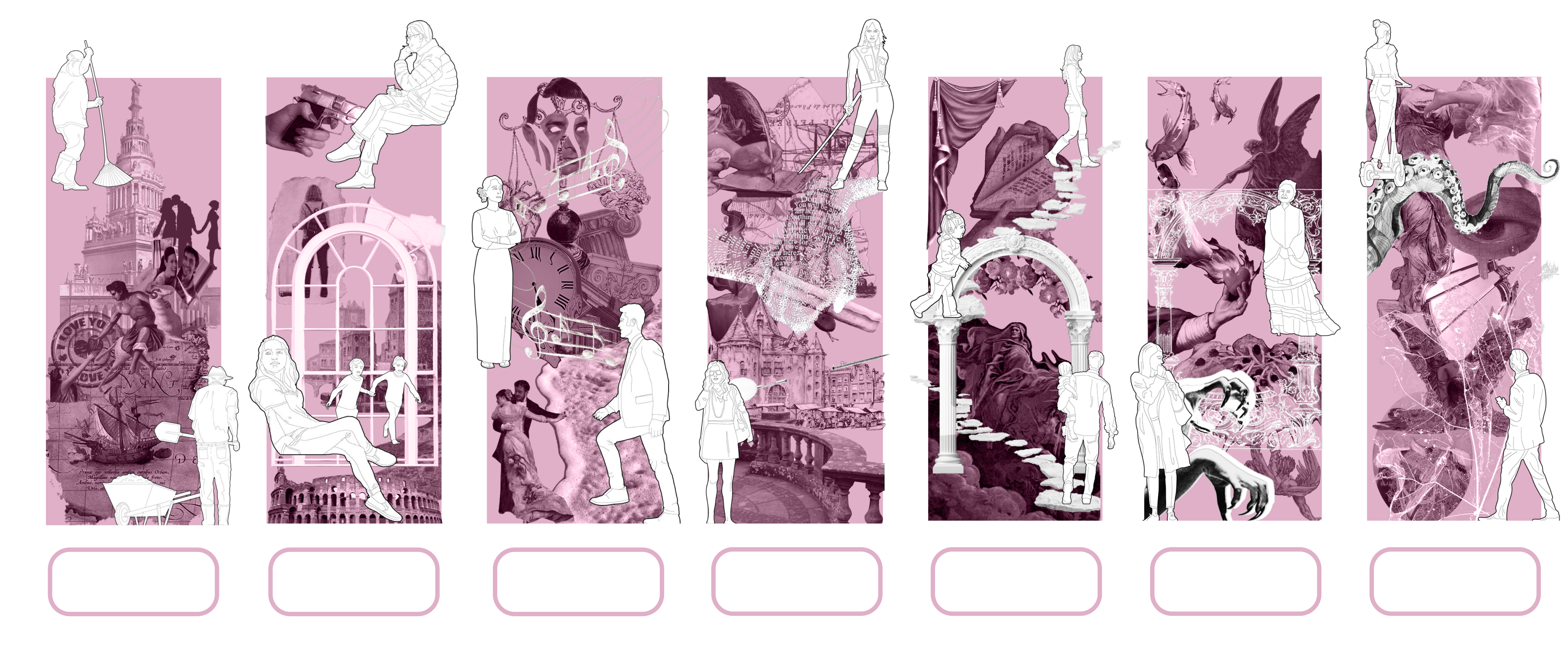 Project Statement Time: JULY 2023–SEPTEMBER 2023 Keywords: Music & Drama Modern society has created great material wealth for human beings, and then the human spiritual world has been devastated. In the face of ghosts and temptations, will people choose to stick to themselves or bow down at the feet of the powerful? Illusory, gaze, ritual, judge, is the first feeling that this music gives me. I was fascinated by the very mysterious atmosphere, the very rhythmic drum beat, the eerie melody and the rising hazy background sound directly reminded me of one of my favorite director Kubrick’s films, Eyes Wide Shut, in which the hero enters the ball wearing a mask. People chase money and fame and yearn for the mystery, cruelty and seductive light of upper class society. And is the seemingly supreme and inviolable religious belief also a FIG leaf for the upper class to rule society?